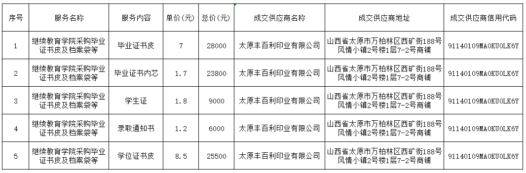 2025年10月28日,sunbet申搏组成询价采购小组,就本单位sunbet申搏采购毕业证书皮及档案袋等进行询价采购活动。询价小组根据用户采购项目的技术参数、商务和服务要求,经过客观公正的评审,现将结果公示如下: