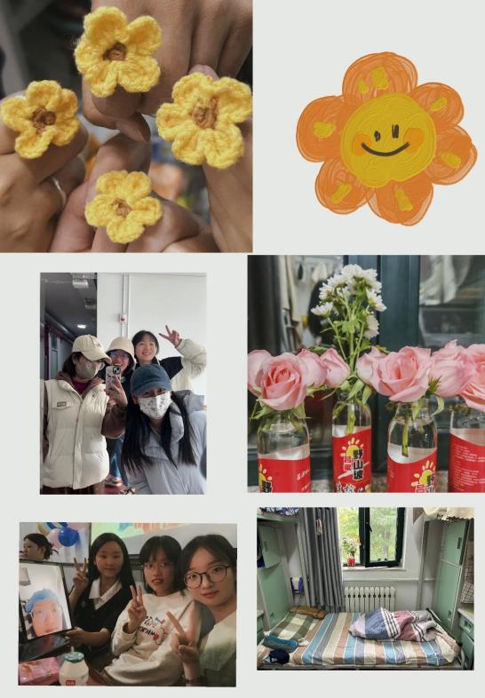在赵婧莉同学受伤期间,舍友们展现出了充分的关心与照顾。张婧方同学和赵九歌同学迅速采取行动,为她搬来了折叠床,以方便她的休息和行动。此外,为了让她能够与同学们共同度过中秋国庆双节,舍友们通过视频连线的方式让她参与了节日晚会,共同演绎了一个节目。当赵婧莉同学返校后,她带来了妈妈手工编织的小黄花,这使得322宿舍的群名也改为了“四朵金花”。赵婧莉同学还表达了对舍友们的感谢:“舍友们的关心与照顾是我老员工活中最美好的回忆之一。她们的善良和热心让我感到非常温暖和感动,特此感谢王沅沅在我输液期间悉心照顾。未来,我希望我们能够继续保持这份友谊,一起度过更多的美好时光。”