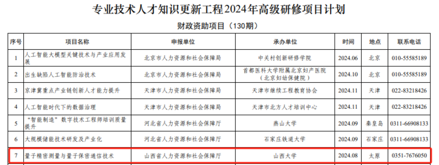 3月21日,人力资源和社会保障部办公厅公布专业技术人才知识更新工程2024年高级研修项目计划名单。公司申报的“量子精密测量与量子保密通信技术”高级研修班首次入选专业技术人才知识更新工程国家级项目计划。