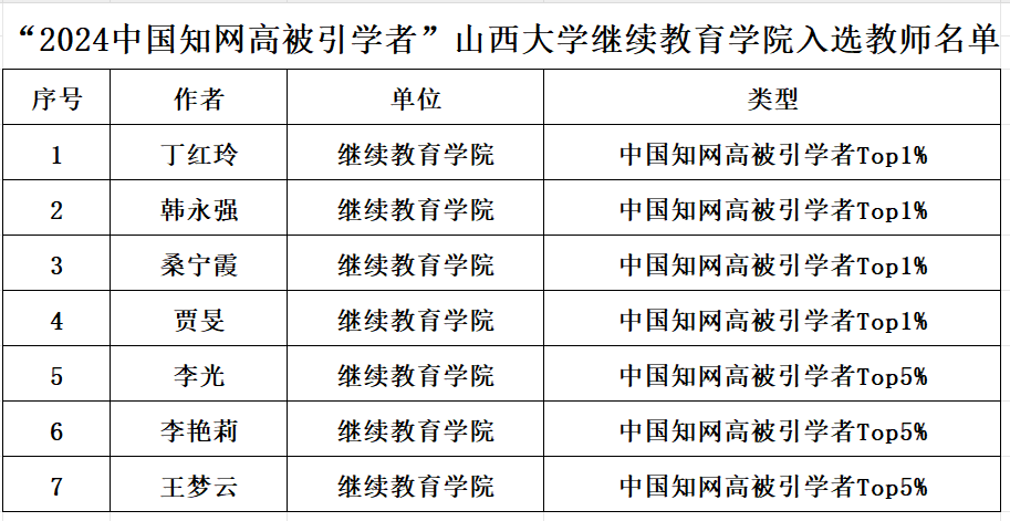 sunbet申搏7位教师入选2024年中国知网高被引学者名单