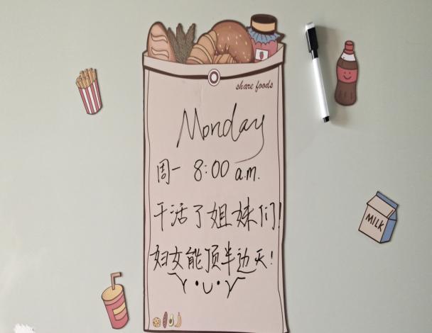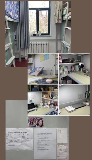 322宿舍四人分别来自山西、山东、河南以及重庆,她们来自天南海北,因为读研相聚在了一起。从一开始的拘谨到现在的无话不谈,成为了彼此非常要好的朋友。在生活上互相照顾,在学习上相互探讨、相互督促。322宿舍在环境上干净整洁,她们每天都会打扫宿舍,并制定了每人的值日表,并且每半个月就会进行一次大扫除。除此之外,她们也制定了宿舍舍规,每位成员都会认真遵守。在宿舍,她们还粘贴了课程表、值日表等,以防忘记上课值日等。